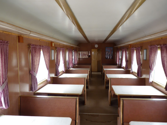 You can go inside these carriages too - here is a view towards the Stuart railway station building, showing a commonwealth railways dining car closest to us: